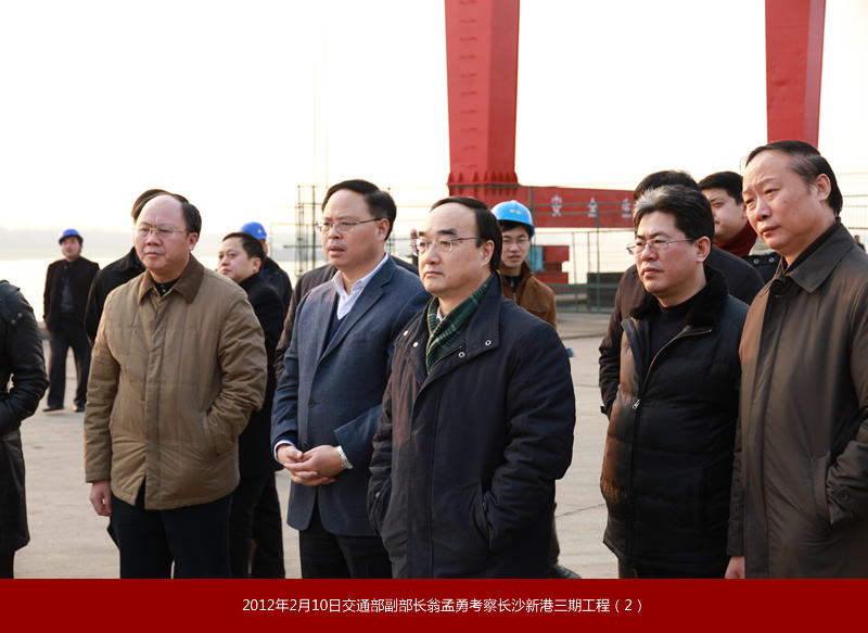 2012年2月10日,交通運輸部黨組副書記、副部長翁孟勇來長沙新港考察時強調(diào):長沙新港變化一次比一次大,當(dāng)前要借助湖南加大水運發(fā)展力度的有利契機,加快樞紐、港口和湘江2000噸級航道提升建設(shè),更好地服務(wù)經(jīng)濟社會和航運的持續(xù)發(fā)展。 |
